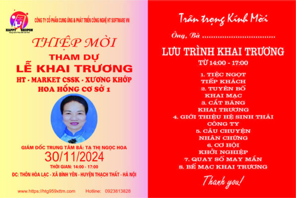 Công ty trân trọng thông báo khai trương Trung tâm chăm sóc sức khỏe HT- Hoa Hồng Cơ Sở 1 khu vực Huyện Thạch Thất Hà Nội