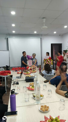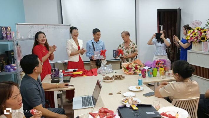 Giám đốc trung Tâm nhận hoa và chúc mừng