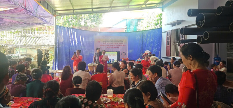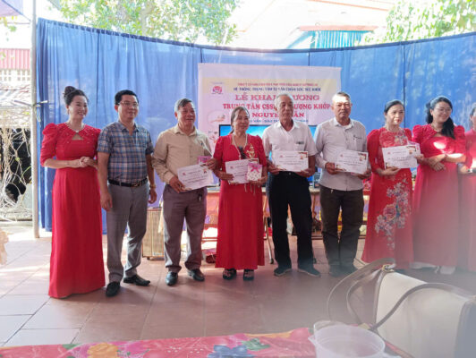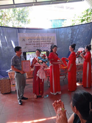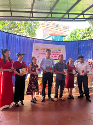 Ban lãnh đạo công ty trao quyết định, hoa cho Giám đốc Nguyễn Mẫn và trao giấy chứng nhận cổ đông cho các cổ đông tại khu vực tỉnh Bắc Giang