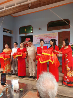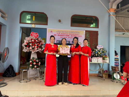 ông Nguyễn Xuân Thắng và ban tổ chức công ty cắt băng khánh thành trung tâm HT- Xuân Thắng