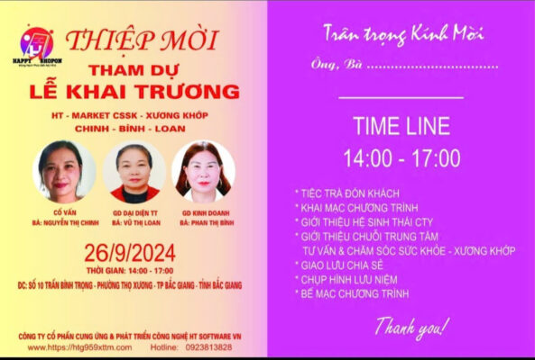 Công ty HT trân trọng thông báo tới quý khách hàng chương trình khai trương như sau: