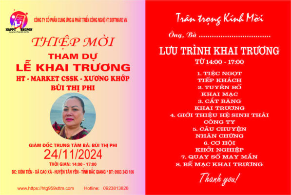 THÔNG BÁO KHAI TRƯƠNG TRUNG TÂM CHĂM SÓC SỨC KHỎE HT- BÙI THỊ PHI ( BẮC GIANG)