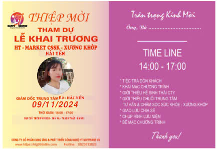 Công ty trân trọng thông báo lịch trình khai trương trung tâm chăm sóc sức khỏe xương khớp HT- Hải Yến