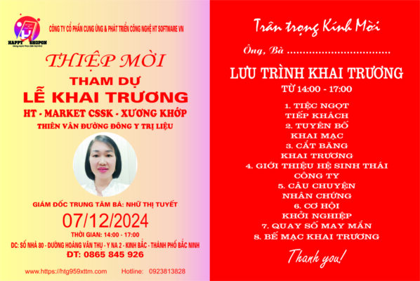 Công ty trân trọng thông báo khai trương Trung tâm Chăm sóc sức khỏe xương khớp HT- Thiên Vân Đường Đông Y Trị Liệu tại Tỉnh Bắc Ninh