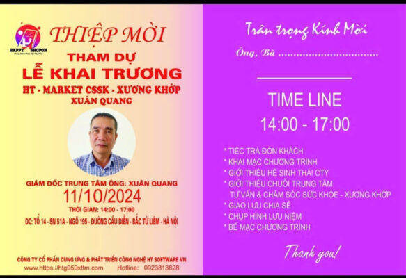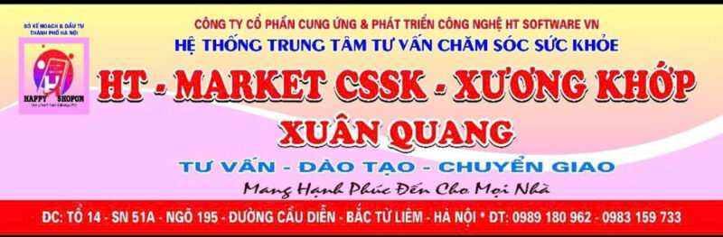 Với sứ mệnh của HT là mang giá trị nhân văn cho cộng đồng ngày càng khỏe để tiêu dùng thông minh.Một minh chứng cho sự lên duyên của Trung tâm Xương khớp HT- Xuân Quang đó chính là Tân Giám đốc Xuân Quang. Anh là người trực tiếp trải nghiệm và sử dụng sản phầm của HT, trước đây Anh Quang bị tai nạn đã sử dụng rất nhiều sản phẩm nhưng không khỏi và trước khi uống sản phẩm Xương khớp Anh không nhấc tay lên cao được nhưng sau khi uống một gói đã có chuyển biến chỉ với 6 gói thuốc uống trong 3 ngày Anh Quang đã giơ được tay phải lên cao và cử động các hướng thoải mái .Từ đó mà Anh đã quyết định đăng ký mở trung tâm CSSK – XUÂN QUANG để trao giá trị vô cùng tuyệt vời này cho cộng đồng và cho Xã Hội. Giúp xóa giảm đi những cơn đau nhức, giảm bớt đi gánh nặng cho mỗi gia đình và mang lại cho người bệnh nguồn năng lượng mới giúp cho cuộc sống có nhiều ý nghĩa hơn .Chính vì vậy mà trung tâm chăm sóc sức khỏe của HT- Xuân Quang đã hình thành tại địa chỉ Tổ 14- SN 51A Ngõ 195- Đường Cầu Diễn- Bắc Từ Liêm- Hà Nội, là một trong những trung tâm của hệ thống xương khớp HT.