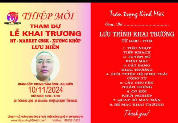 Trân trọng kính mời quý khách hàng tới tham dự buổi khai trương!